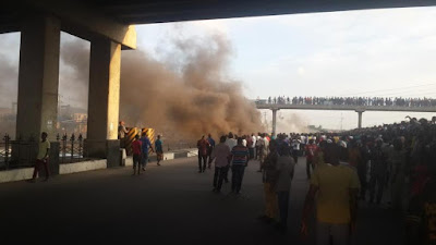 A Petroleum tanker exploded at Cele busstop along the Oshodi-Apapa expressway this evening. Traffic along that axis has been on standstill since the incident.