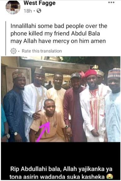 Bala was was killed on Friday, October 22, around Zungeru Road-Festing Road in Kano metropolis.