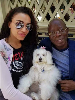 Former Edo State Governor, Adams Oshiomhole shares photo with his beautiful wife, Lara and their dog.