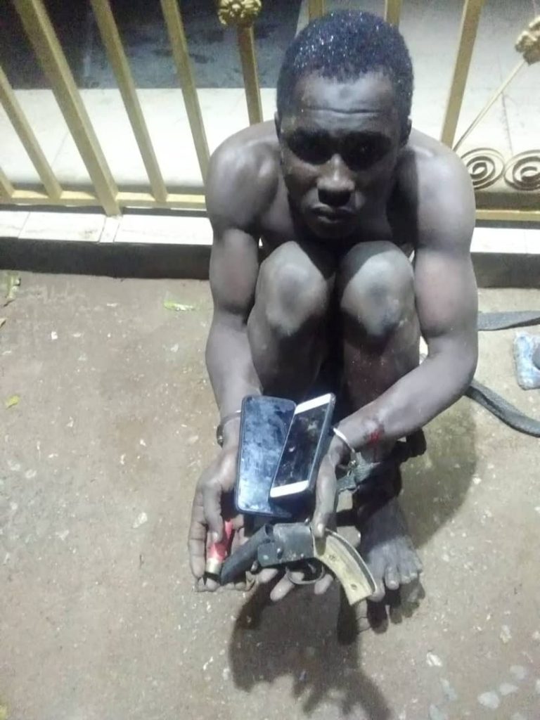 The suspect was arrested following a distress call received by policemen at Sango divisional headquarters, that armed robbers have invaded Adebeshi street, off Joju road, Sango ota, and dispossessing members of the community of their belongings at gun point.