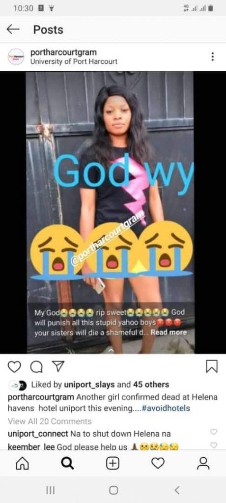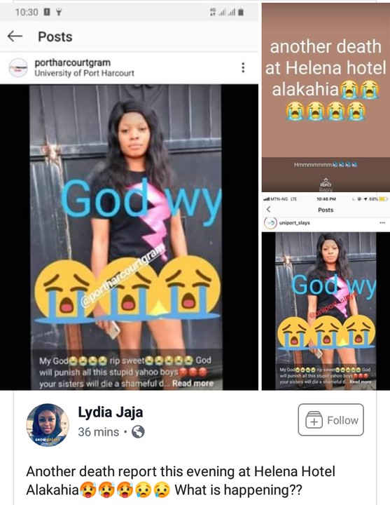 According to Facebook user who shared some photos, another lady has been found dead in a hotel in choba Port Harcourt…