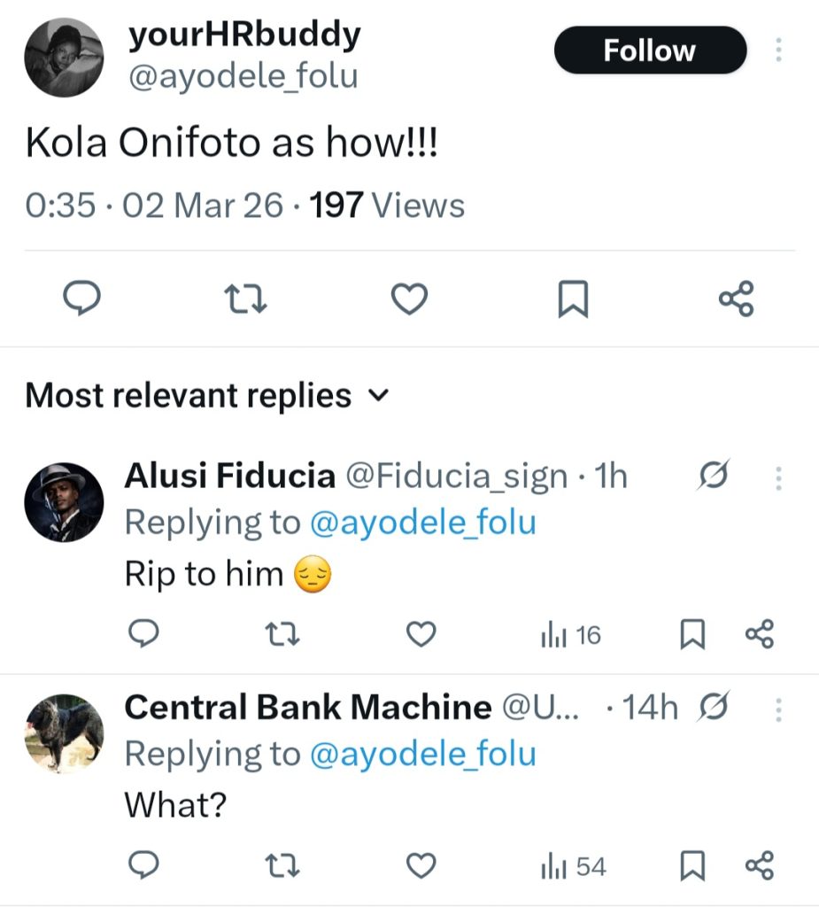 Orowole Samuel Kolapoz, better known as Kola Onifoto, died today, March 2, at the age of 35.