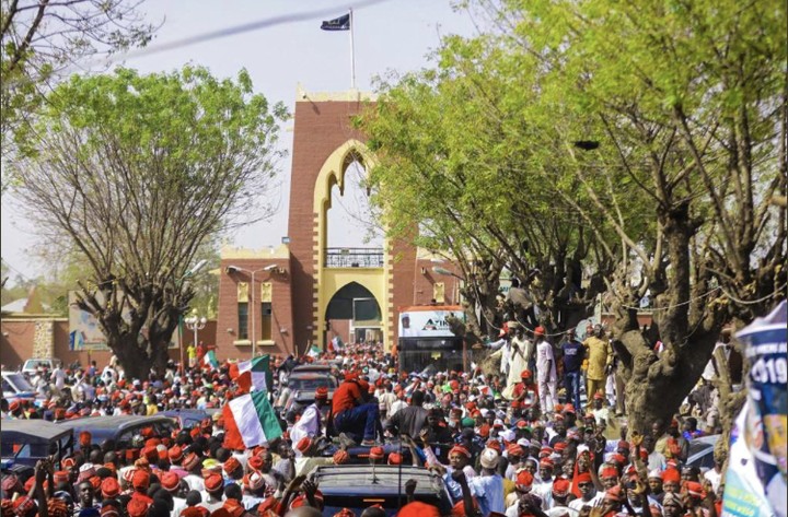PDP presidential candidate, Atiku Abubakar and senate president, Bukola Saraki paid homage to Emir of Kano, HRH Muhammadu Sanusi II during his campaign visit in Kano.