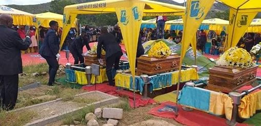 The burial ceremony of the four kids who were allegedly murdered by their father after he accused their mother of cheating and infecting him with HIV took place on Sunday march 1st, at Ga-Phasha village, outside Burgersfort in Limpopo, South Africa.