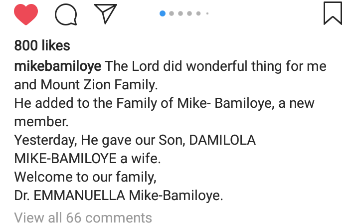 Photos from the wedding was shared by mike Bamiloye himself on his page congratulations the new couple.