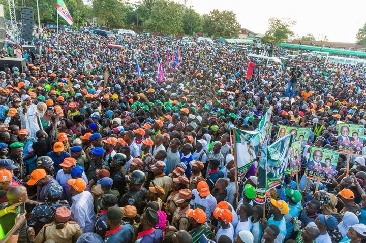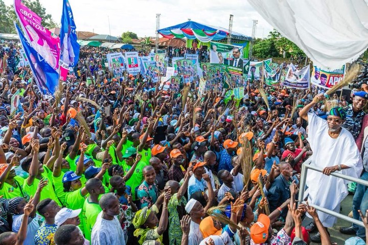 Crowd steps out for Osun APC gubernatorial election mega rally held in Ikire yesterday.