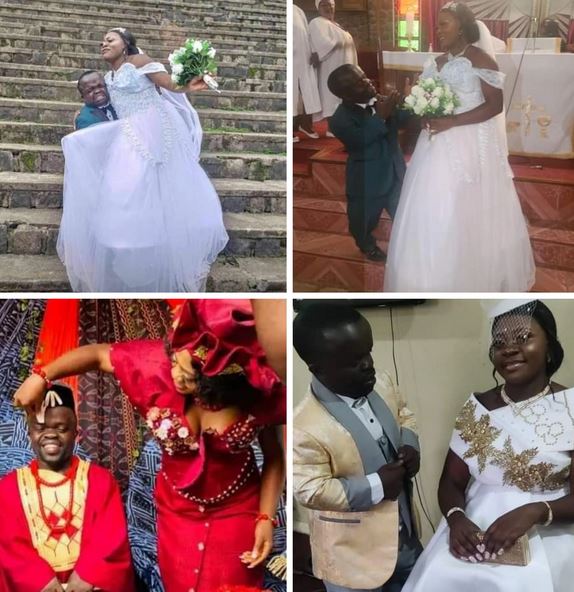 A diminutive teacher, Kwoyela Derick, has tied the knot with his lover, Kahboh Patience.