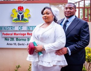 The couple had their customary wedding at the Federal Marriage Registry in Abuja.