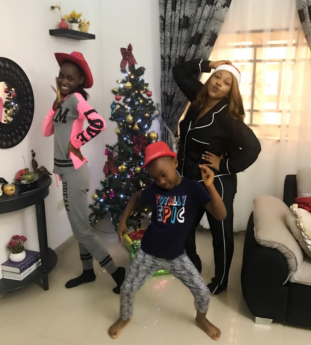 The mother of 2 is not letting issues with her Hubby to stop her from celebrating the christmas in a big way, the actress shared these adorable photos of the them playing at their home in Lekki this morning, But her Hubby isn’t there with them, Lots of people thought they’ve may have gotten back together tho..