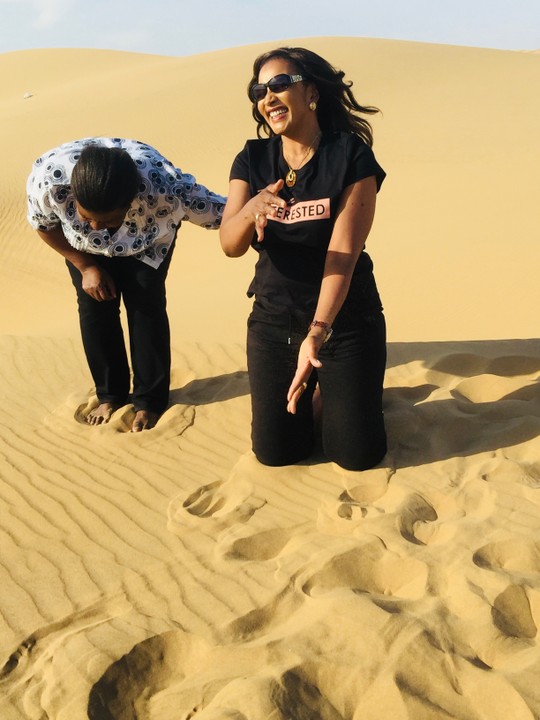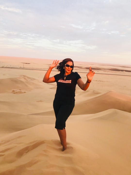 Bianca Ojukwu, wife of the late Igbo Leader and Former Nigeria’s Ambassador to Spain shared amazing pictures of her desert exploration in the Namib Desert, the oldest desert in the world on Facebook