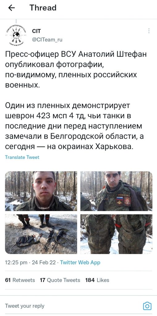 One of the prisoners demonstrates a chevron 423 MSP 4 TD, whose tanks were noticed in the Belgorod region in the last days before the offensive, and today – on the outskirts of Kharkov.