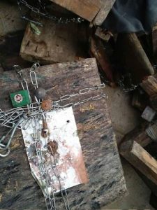 As they went to his house, they saw Photographs of people tied, padlocked and nailed in his shrine, most of them who were nailed are suffering strokes in real life.