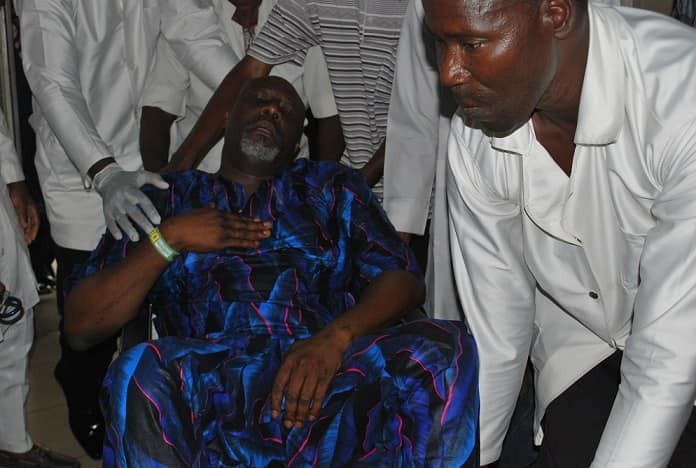 Shortly after he slumped at the police headquarters Abuja, embattled Senator Dino Melaye was rushed to the police clinic in Garki, Abuja.
