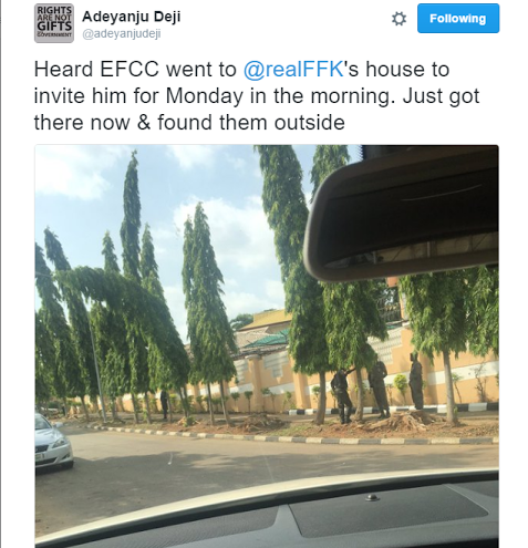 Photos of EFCC officials surrounding FFK’s home after serving him an invitation