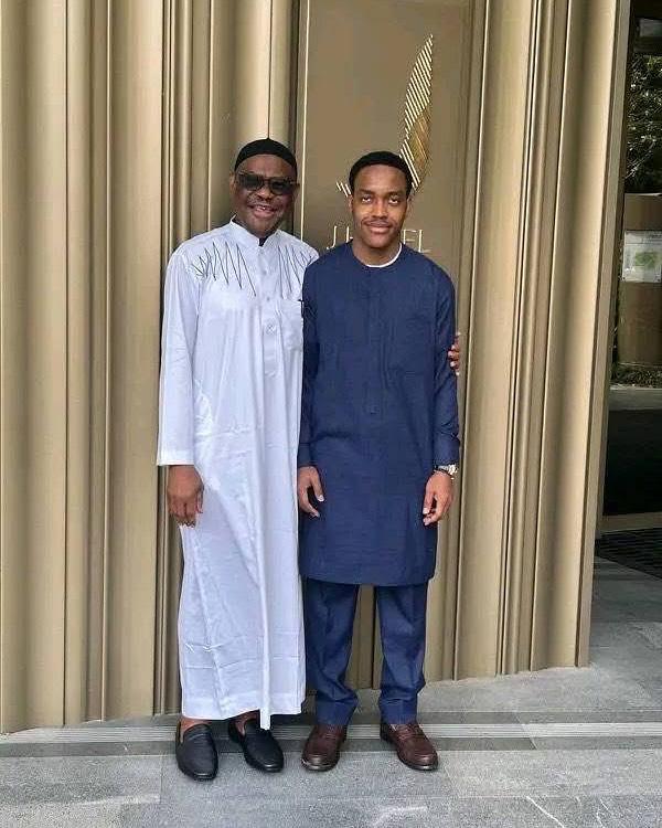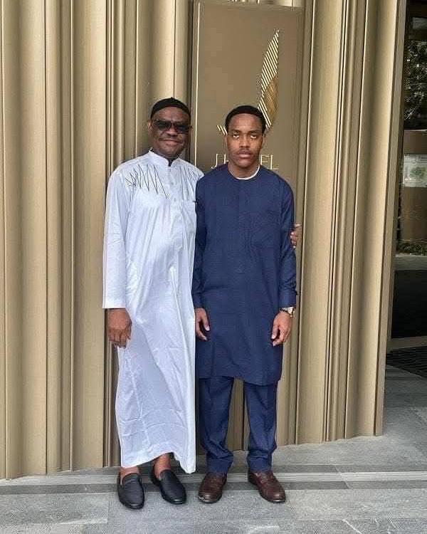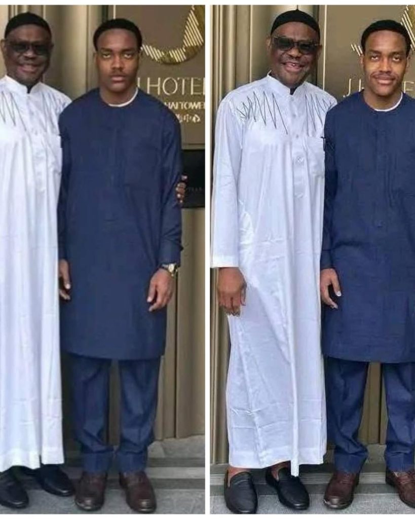 Photos of FCT Minister, Nyesom Wike and his son in China have been shared online.