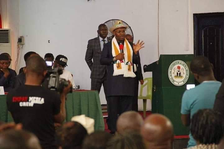 Akwa Ibom State Governor, Mr Udom Emmanuel, today Tuesday 19th December 2018, had a one-on-one interaction with teachers in fashioning out modalities to re – energise the education sector during a – one day Teachers Refreshers Training and Town Hall Meeting put together by Education Monitoring Unit in collaboration with the state Ministry of Education for Principals, Head Teachers And Education Stakeholders at the Mboho Mkparawa Ibibio Hall , Udo Udoma House, Uyo.