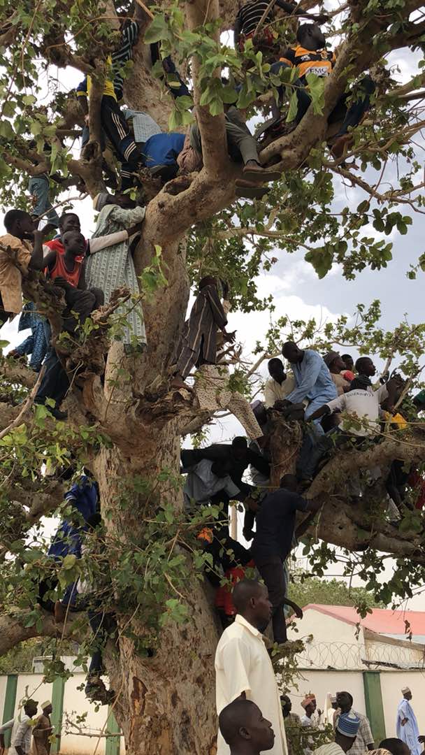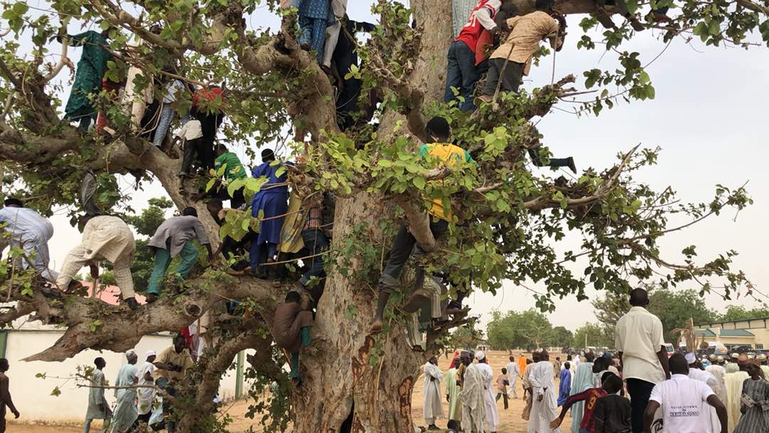 This is not a Christmas tree.They are Buharists doing all they can to welcome their leader to Jigawa State.