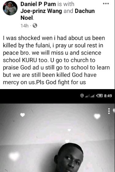 Friends are now mourning the student who was killed by gunmen in Kuru community, Jos South Local Government Area of Plateau state.