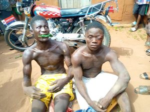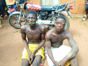 Two young men suspected to be members of a three-man gang that specialise in snatching motorcycles have been apprehended in Abavo, Ika South Local Government Area of Delta state.