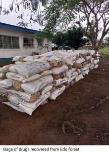 Earlier same day, men of the Irrua Area Command of the Agency working on actionable intelligence evacuated 10 bags of cannabis sativa weighing 135kg in Amahor bush in Igueben area.