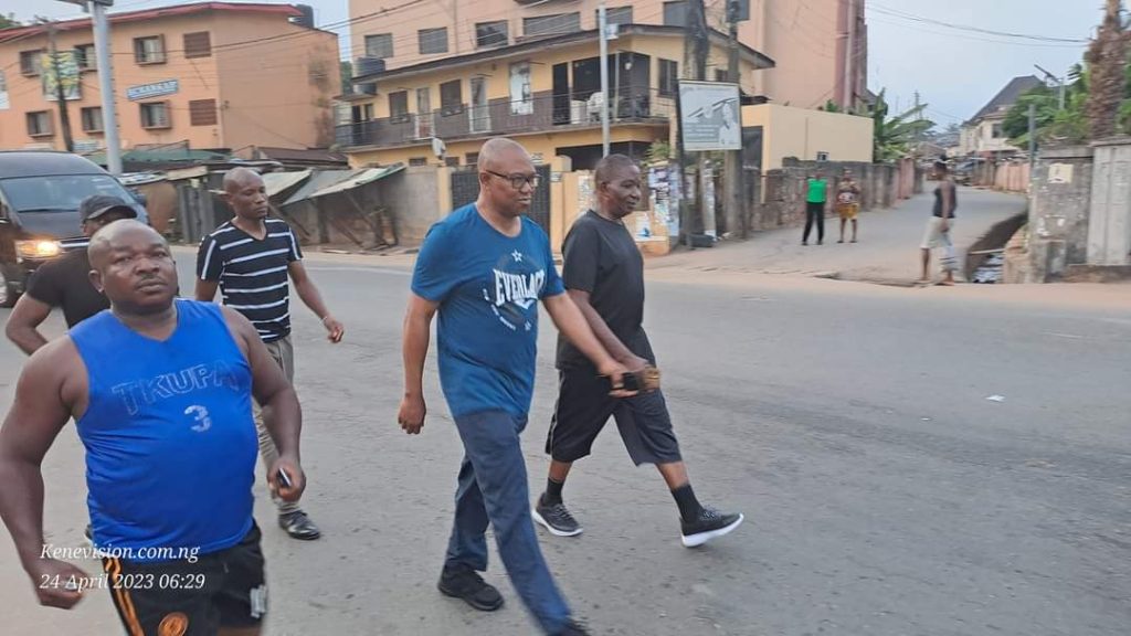 Pictures Of Peter Obi Working Out On The Streets Of Onitsha, Anambra State