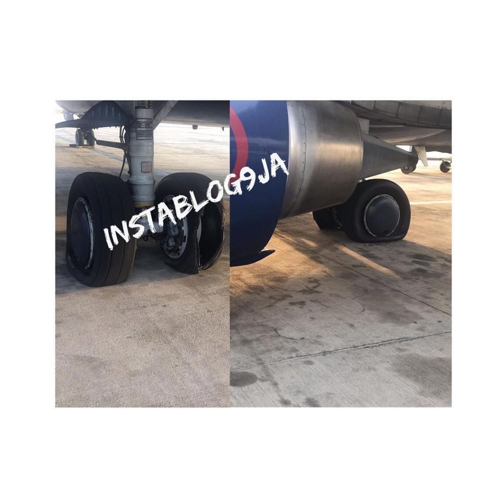 The incident allegedly happened, about 3 minutes after the plane started taxiing. According to a passenger, they heard a deafening sound, only to alight and discover that two tyres had burst.