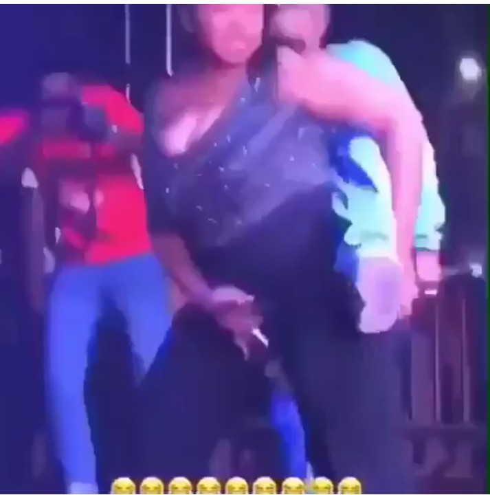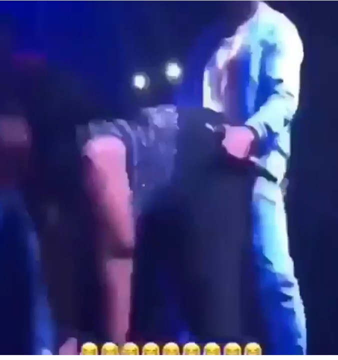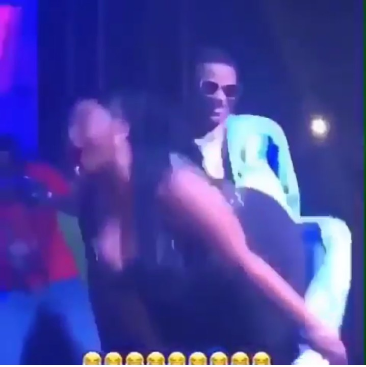 The star boy boss wizkid was seen giving his female fan a banging doggy style show on stage ,which causes the lady to scream hard.