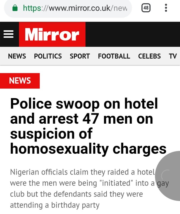 The police in Lagos State have arraigned 47 men before a Federal High Court for allegedly engaging in amorous gay sexual relationships.