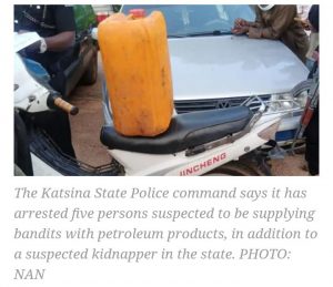 The Katsina State Police command says it has arrested five persons suspected to be supplying bandits with petroleum products, in addition to a suspected kidnapper in the state.