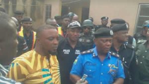 “ Speaking while parading Adebayo before newsmen at the shrine , the State’ s Commissioner of Police , Mr. Imohimi Edgal , said the head of the group was arrested on water during an attempt to escape.