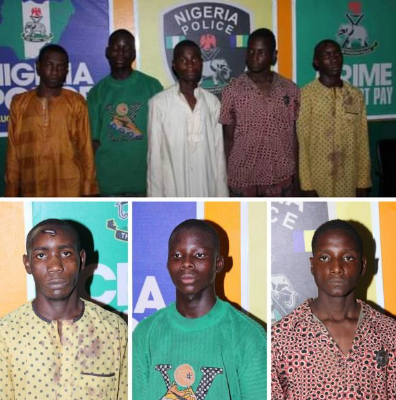 “Subsequently, the following accomplices of Ishaka Aliyu were also arrested; Lukman Hussaini ‘m’ aged 18yrs alias (Lukuku) of Gwabba, Ashiru Suleiman ‘m’ aged 25yrs alias (Kwado) of Emir’s drive, Yusuf Abdullahi ‘m’ aged 20yrs alias (Kiss) of Zango, Abdulrazak Hassan ‘m’ aged 19yrs alias (Zaki) of Zango, and Musa Isa ‘m’ aged 18yrs alias (Feeder) of Zango