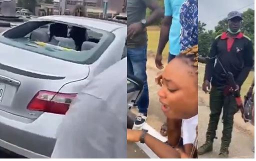 Twitter user @ewejeoyewole, shared the video online and said the wife of the man who was riding the car, fainted shortly after the officer fired the gunshot that shattered the glass of their car. The police officer dressed in a Mobile Police outfit was seen brandishing an AK 47 gun.