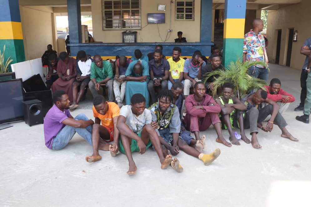 Other suspects arrested are Abdul Nai’ja, Josua Steven, Livinus Steven, Ismail Abdullahi, Munir Sada, Ibrahim Yahaya, Yahaya Musa, Dahiru Nasiru, Abdullahi Muhammed, Monday Barnabas, Hamisu Iman, Promise Abanonum, Ehieze Emeka, Ehieze Justice, Mohammed Inusa, Tijanni Suleiman, Promise James, Haruna Auwalu, Ayuba Danjuma, Suleiman Abu, Nafiu Ahmmed, Kamalu Junaidu, Zaradeen Yakubu, Abdulhadi Adam, Mohammed Ibrahim, Chukwu Emmanuel, Douglas Yahaya, Mohammed Lawal, Auwal Musa and Abubakar Kabiru.