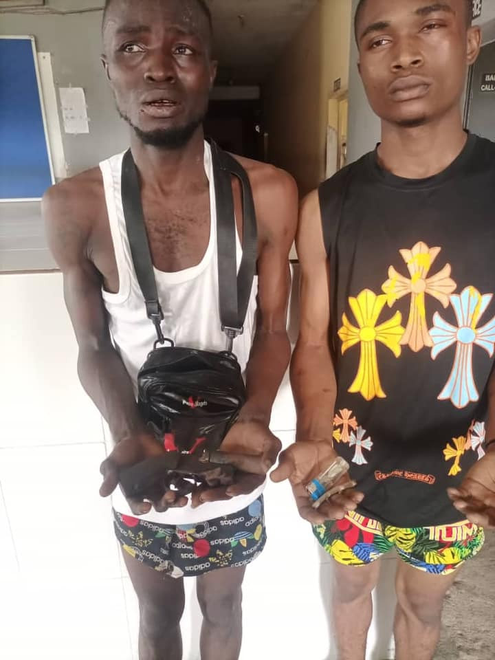 Two suspected criminals have been apprehended by operatives of the Delta State Police Command on Monday.