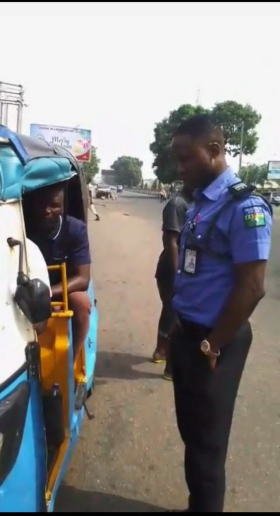 Nigerian Police officer gifts passengers in a tricycle cash to celebrate Christmas in Asaba, Delta state.