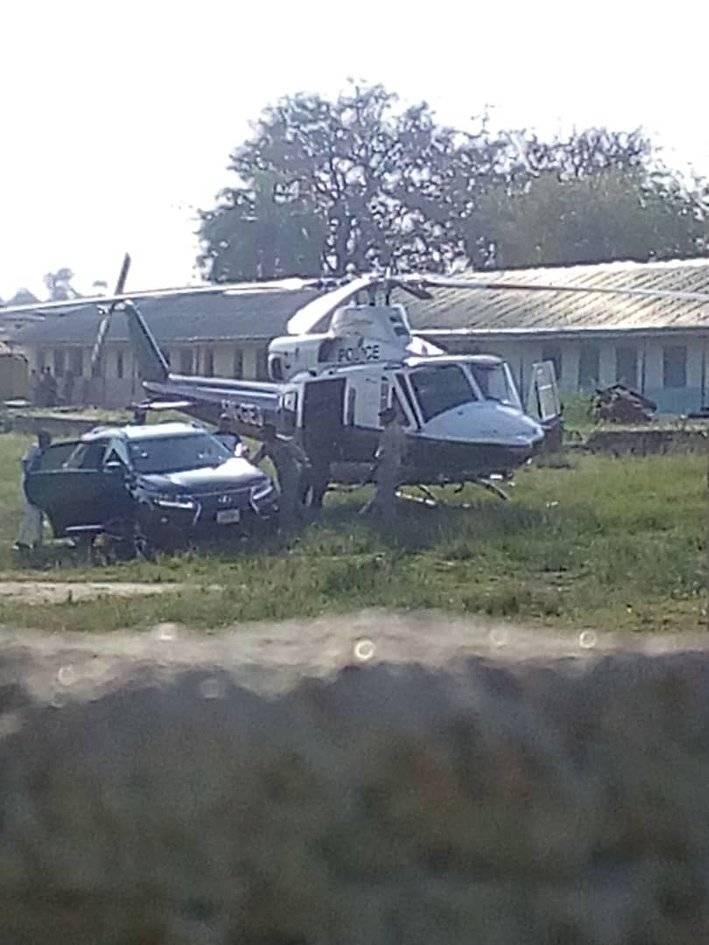 On landing, the helicopter was immediately surrounded by 3 police vehicles while items carefully packaged in 5 sacks were offloaded from the aircraft to some vehicles.