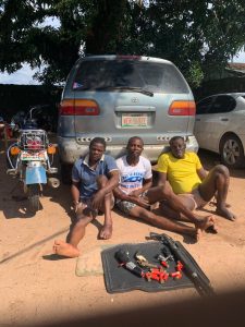 “On the same day at about 2230 hours luck ran against the kidnappers, when the ever-active Ngor Okpala police Division Patrol Team on receipt of the report intensified its patrols and in the process intercepted and arrested three members of the kidnapping gang namely; Udochukwu Edmund ‘M’ age 38 years of Umuezu Onitsha Ezinihitte in Mbaise LGA of Imo State, Uba Edmund ‘M’ age 45 years of the same address, John Okoroafor ‘ M ‘ age 33 years of Amucha Isu Njaba LGA of Imo State, and handed them over to the Command’s Anti-kidnapping unit for diligent investigation. ”
