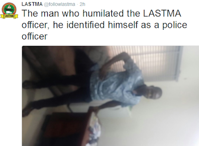 According to the twitter handle of the Lagos State Traffic Management Authority LASTMA, a police escort brutalized and handcuffed a LATSMA officer who was carrying out his duty at Ajah. See more photos after the cut…
