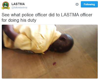 Police officer brutalizes LASTMA official in Ajah (photos)