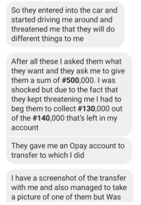 They eventually asked him to pay N500,000 but he pleaded that he doesn’t have up to that amount in his account.