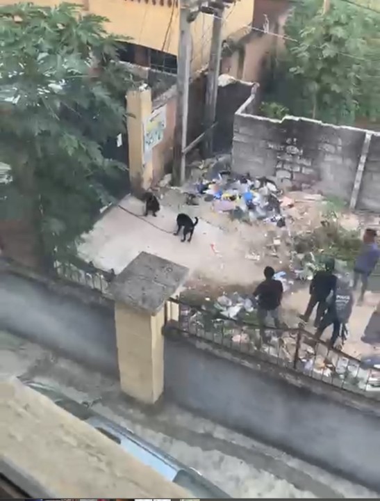 Seems the police came to arrest some of the occupants in that compound who brought out their dogs and the police men were scared of entering the compound.