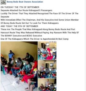 “Yes, some of the suspected kidnappers were apprehended in Bodo Town and the victims were freed.” said Adeniyi.