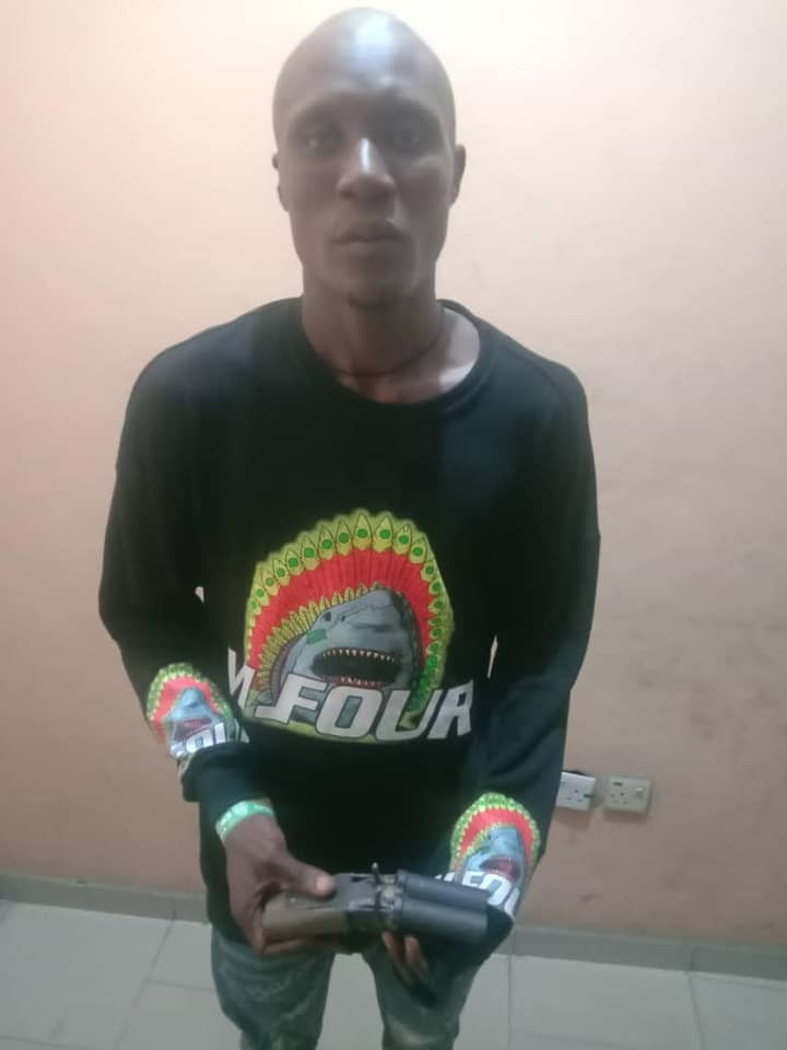 “After a thorough search was conducted on him a locally made pistol was recovered from the suspect. The suspect namely, Solomon Omachonu ‘m’ 27yrs of Igbedo community Nzam Olumbanasa Anambra West Local government of Anambra State but residing at Amusement Park in Koka area of Asaba was arrested. Other exhibits recovered includes, army colour face cap, a camouflage army colour belt and wrist watch with unregistered motorcycle. Investigation is ongoing.”