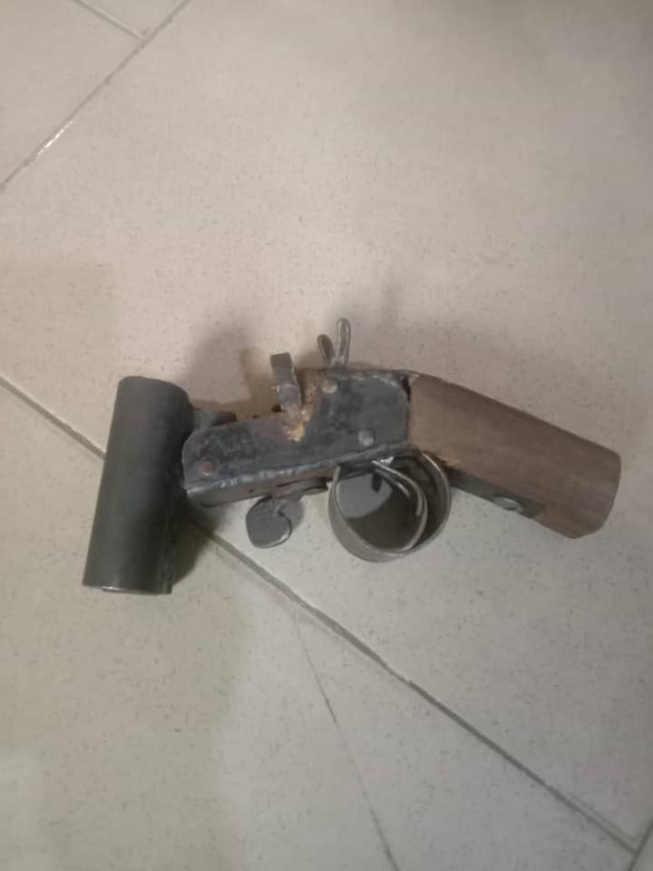 “After conducting search on the bag, one locally made cut-to-size double barrel gun was found. On suspicion that the suspect might come back to carry his weapon, the team laid ambush in the bush, after a short while the said suspect resurfaced with intend to collect the exhibit. The suspect one Joshua Godwin ‘m’ 28yrs was eventually arrested. Investigation is in progress.
