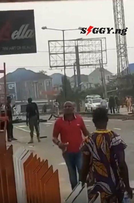 The police officers were in the area to restore normalcy and a man was heard in the background, asking why they will be “shooting” into a school.