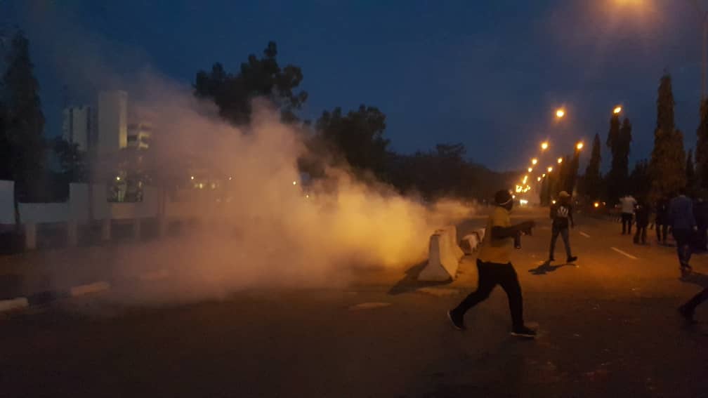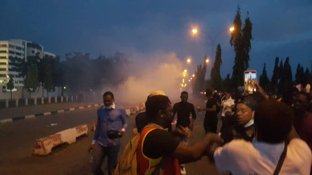 Policemen have fired teargas canisters to disperse hundreds of Nigerians calling for an end to the Special Anti-Robbery Squad in the country.