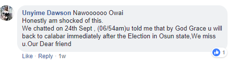 Owai Owai who is from Adim Baise local government area in Cross River State, reportedly called his family member on that fateful day and promised to return home for a visit after the Osun election, but he was killed over a dispute that had to do with money.