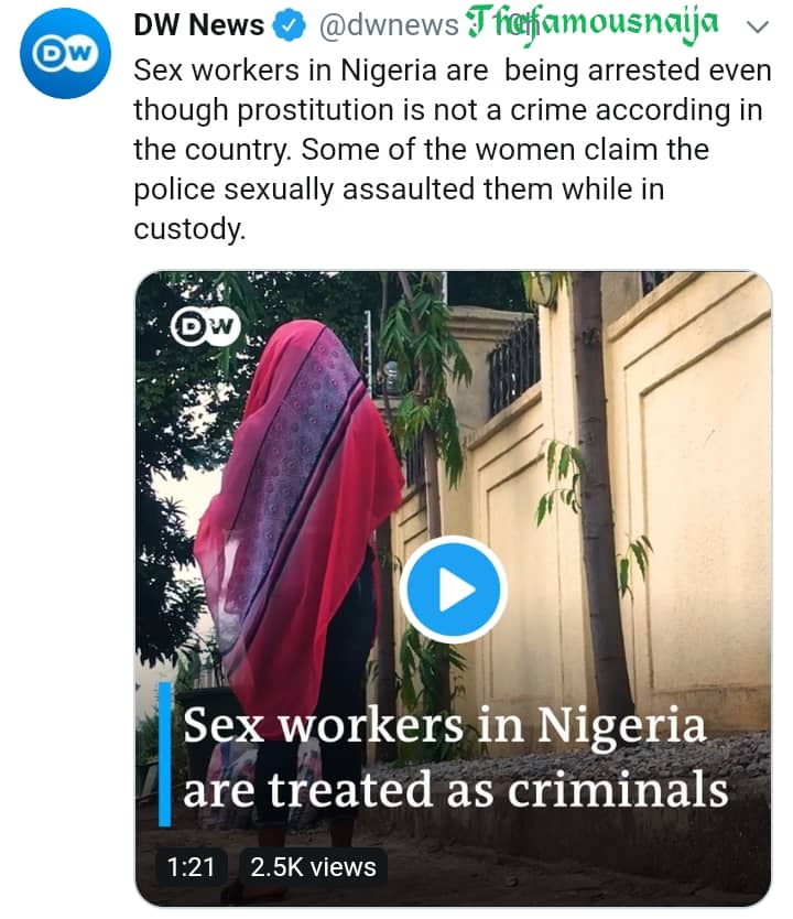 The video posted by DW showed some Nigerian prostitutes, how they hustle and some of them were interviewed as they revealed how they were Harassed and abused by policemen.