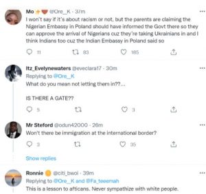 I won’t say if it’s about racism or not, but the parents are claiming the Nigerian Embassy in Poland should have informed the Govt there so they can approve the arrival of Nigerians cuz they’re taking Ukrainians in and I think Indians too cuz the Indian Embassy in Poland said so.