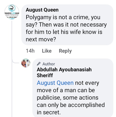 Reacting to Agnes’s Facebook post, Mr. Sheriff advised men to marry where they find peace, adding that polygamy is not a crime